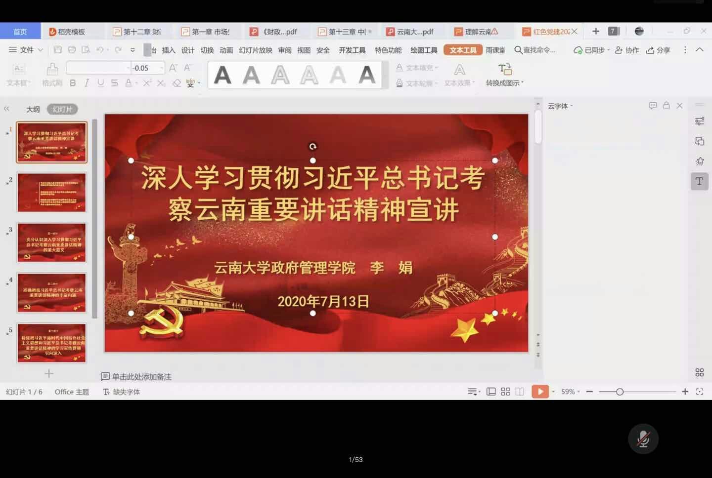 为深入学习贯彻党的十九届四中全会精神和习近平总书记考察云南重要讲话精神,按照雷竞技raybet登录入口“万名党员进党校”全员轮训工作安排,2020年7月13日下午,雷竞技raybet登录入口通过腾讯会议开展“习近平总书记考察云南重要讲话精神”专题宣讲。本次培训由学院党委书记李娟书记和政治系孙保全副教授主讲。学院全体师生党员参加本次宣讲会。