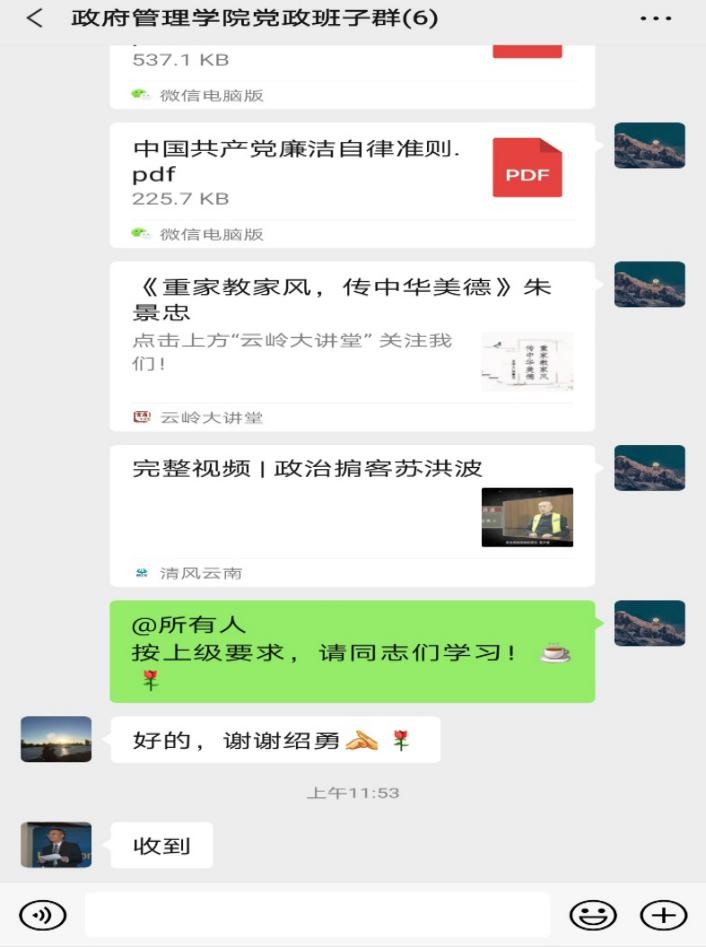 雷竞技raybet登录入口组织师生党员收看由云南卫视播放的“云岭好家风”廉政文化系列专题片和云岭大讲堂《重家教家风,传中华美德》讲座,强化师生党员廉洁齐家的意识。家风建设要旗帜鲜明讲政治,让家庭成为主旋律的阵地、正能量的源泉。家风败坏是滋生腐败的重要诱因,廉洁从政首先要建设好家庭、树立好家风。坚持用社会主义核心价值观引领家风建设,用家庭风尚涵养时代风尚。