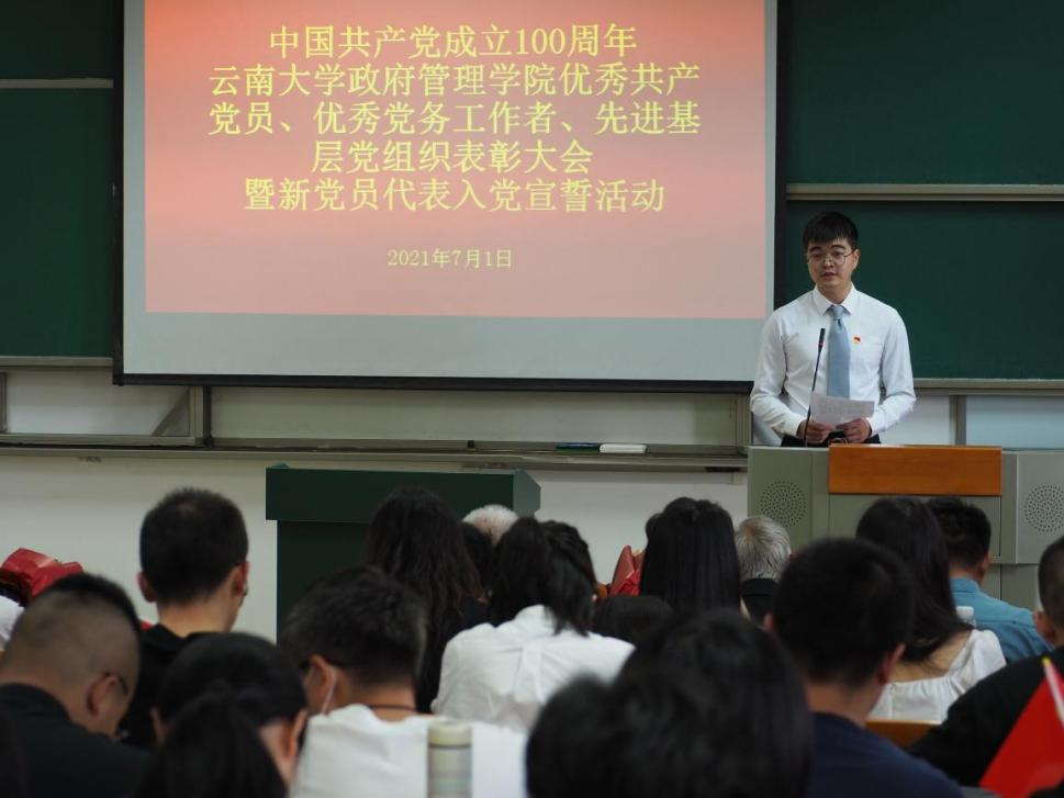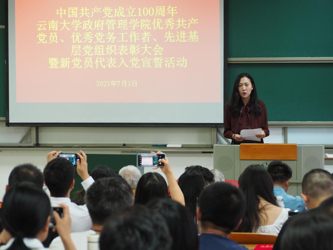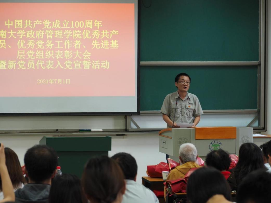 2021年7月1日,中国共产党成立100周年雷竞技raybet登录入口雷竞技raybet登录入口优秀共产党员、优秀党务工作者、先进基层党组织表彰大会暨新党员代表入党宣誓活动在文汇楼2302举行。会议议程涵盖新党员代表入党宣誓暨在场老党员重温入党誓词,颁发“光荣在党50年”纪念章,对学院优秀共产党员、优秀党务工作者、先进基层党组织进行表彰等内容。在建党百年之际,雷竞技raybet登录入口党委通过表彰雷竞技raybet登录入口、民族政治研究院、高等教育研究院先进,激励全体师生党员牢记初心使命,强化使命担当。