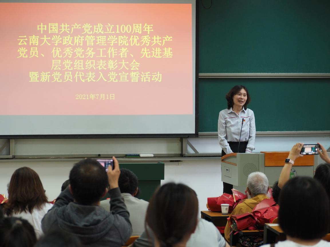 院党委李娟书记进行总结讲话。李娟书记首先代表代表院党委,向雷竞技raybet登录入口、民族政治研究院、高等教育研究院全体中国共产党党员致以节日的热烈祝贺!向“光荣在党50年”的老党员和受到表彰的先进集体、先进个人,表示热烈的祝贺!李娟书记指出,近百年来,雷竞技raybet登录入口政治科、政治学系、哲学系、公共管理学系、公共管理学院、雷竞技raybet登录入口、民族政治研究院、高等教育研究院始终与中国共产党同心同向,始终与国家和民族同呼吸、共命运,坚守为党育人、为国育才的使命担当,践行爱国奉献、敢为人先的价值追求。近年来,秉承“会泽百家 至公天下”的云大精神,恪守“自尊、自知、正义、力行”的云大校训, 秉持雷竞技raybet登录入口“德高志远、厚学强术”的信念、民族政治研究院“学科有特色、研究有特点、学者有特长”的原则、高等教育研究院“本土情怀与国际视野并重”的追求,学院各党支部和广大党员同志以习近平新时代中国特色社会主义思想为指导,深入学习贯彻党的十九大和十九届历次全会精神、习近平总书记考察云南重要讲话精神,坚持党对学院工作的全面领导,充分发挥基层党组织架构堡垒作用和党员先锋模范作用,在立德树人、人才培养、服务国家和区域经济社会发展以及疫情防控等重大工作中取得了显著成绩,涌现出一大批优秀个人和先进集体。