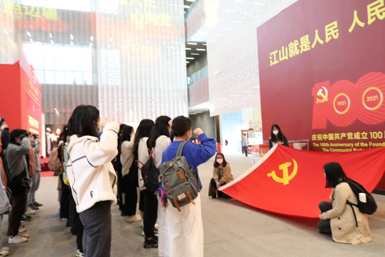 参展结束后,院党委组织员殷筱晔老师带领全体党员同志开展党员宣誓活动,党员同志宣誓声音坚定有力,蕴含着自己守时代初心,践行党员义务,做时代新人的决心。