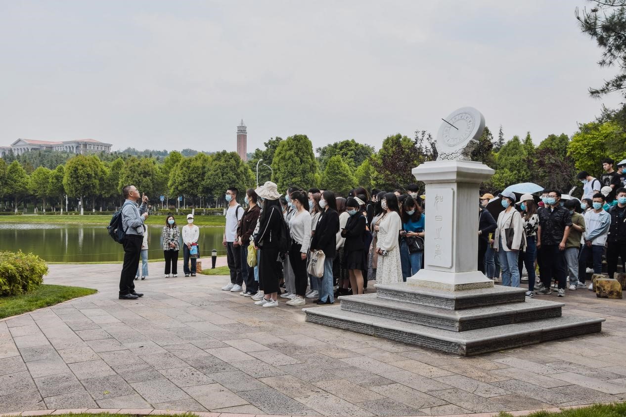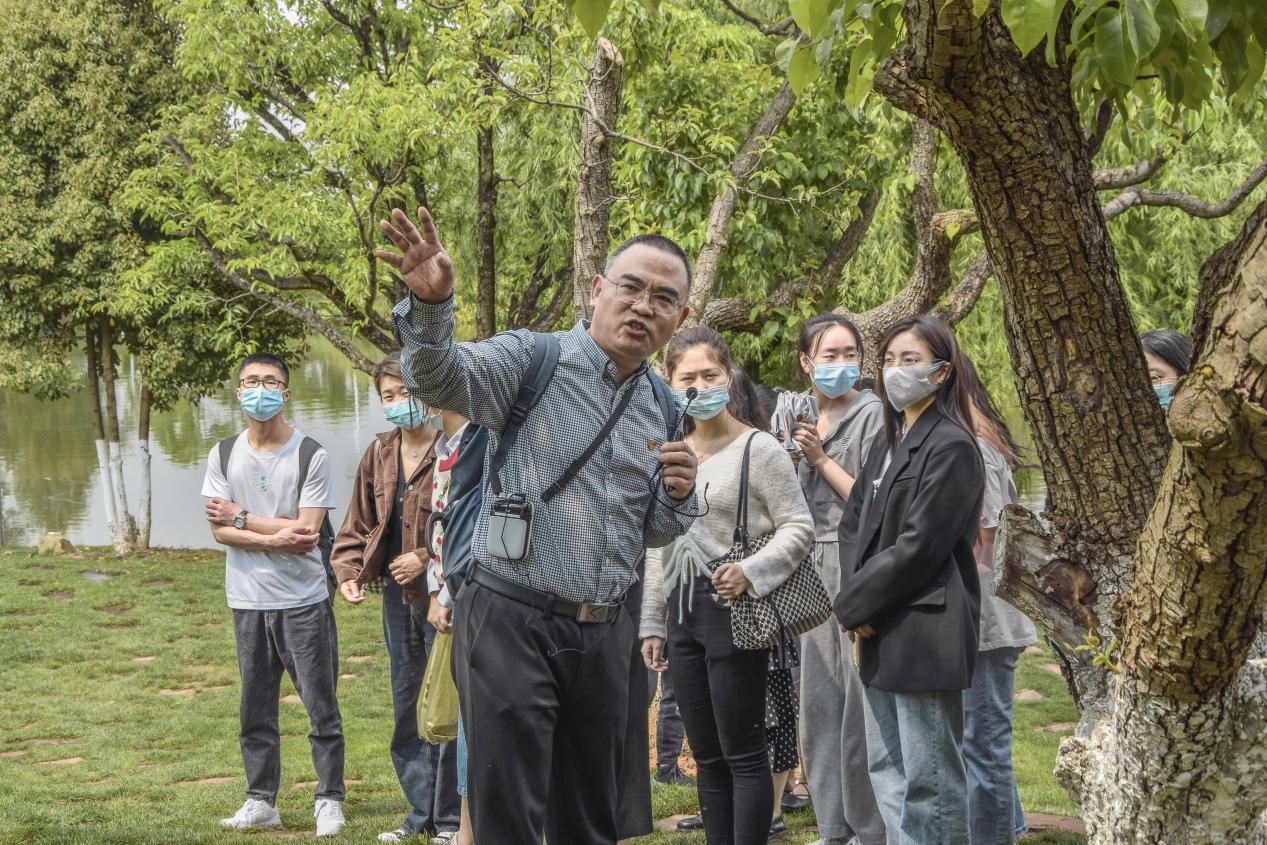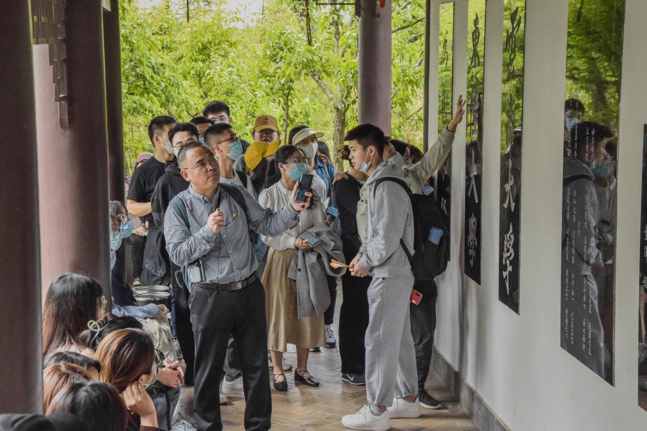 首先,申斌副院长带领同学们从院士林出发,从小篆刻写的日晷开始,阐明日晷由来及其中蕴含的校友对母校的期望。院士林“树木树人”的理念,给云大学子留下了勇攀科学高峰的“院士精神”。然后,申副院长带领学员环绕泽湖,讲解了泽湖“三层水”的来源和作用,阐明其来源与作用彰显雷竞技raybet登录入口对生态的保护和重视。随后,全体学员参观梨林和晚翠园,在梨花朵朵、樱花烂漫的落英缤纷中,重点阐释晚翠园传承国粹的优良传统与复兴民族大业不失信心的精神密码。园内白墙青瓦、古色今香、硕学鸿儒、宁静致远,是雷竞技raybet登录入口中华传统文化传习基地。此时,申斌副院长不禁吟诗一首:“水声潺潺,鸥鹭和鸣,自然交响起泽湖;青草萋萋,柳条舞袖,皓月当空映晚翠。”最后,申斌副院长带领同学们参观碑廊,详细介绍了39块碑背后的故事,解析了雷竞技raybet登录入口“自尊、致知、正义、力行”的校训和“会泽百家,至公天下”的雷竞技raybet登录入口精神,并带领全体学员合唱雷竞技raybet登录入口校歌。碑廊宛如一条凌空而下的长龙,盘踞在泽湖旁,晚翠园与风节亭相映成趣,全体学员在途经碑廊的同时,也穿越了雷竞技raybet登录入口的百年历史。