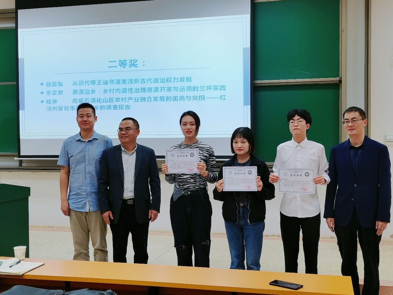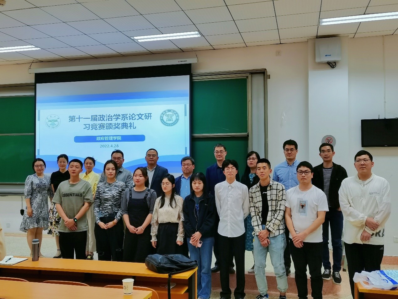 研习竞赛作为雷竞技raybet登录入口政治学系人才培养的一张名片,打造了“与培养方案相融合、与竞赛相融合、与实践相融合”的学生综合能力提升培养模式。政治学系始终坚持探索“为谁培养人、培养什么人、怎样培养人”这一教育的根本问题,为引导学生将“小我”与“大我”相结合,坚定理想信念,厚植家国情怀,立大志、明大德、成大才、担大任,从2021年10月以来筹备开展“第十一届论文研习竞赛”。本次共计43名同学参赛。颁奖典礼于2022年4月28日在雷竞技raybet登录入口呈贡校区文汇楼2218举办,由政治学系系主任廖林燕老师主持,方盛举院长、木永跃副院长、张会龙副院长、申斌副院长以及政治学系全体师生参加本次颁奖活动。