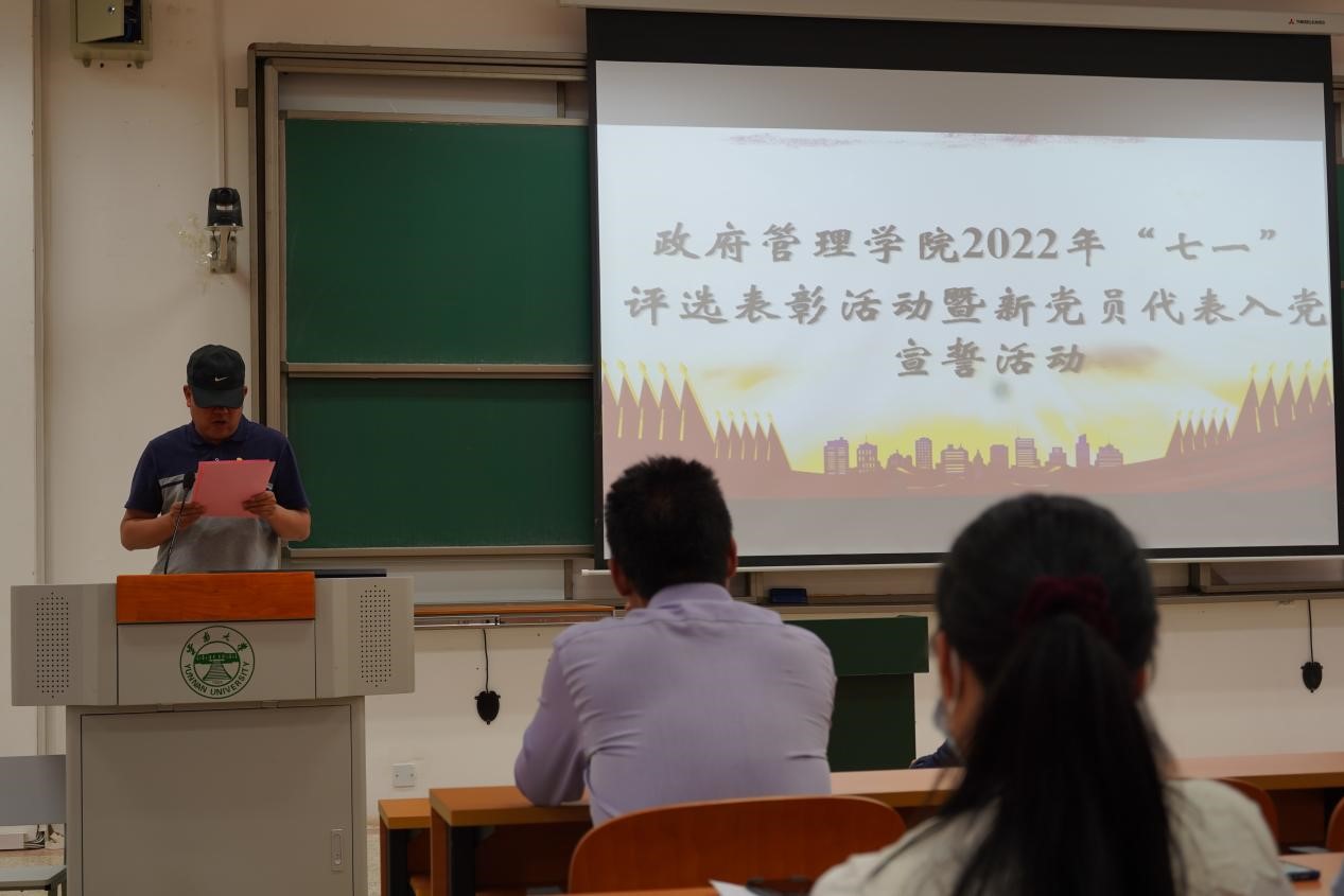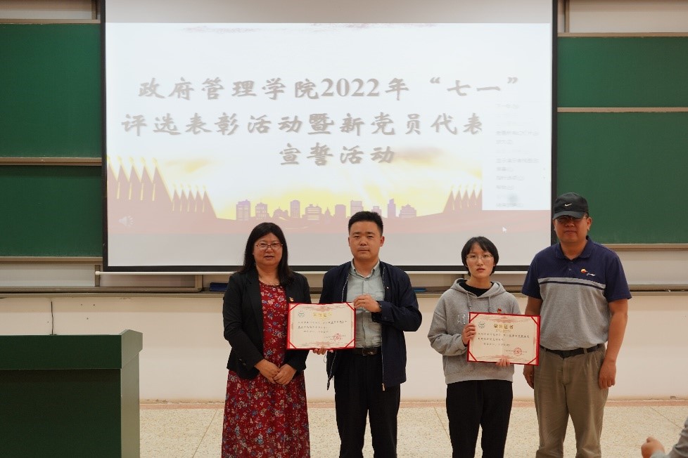 党课结束,院党委姜绍勇副书记宣读2022年“七一”评选表彰名单,学院领导为获奖支部和党员颁奖。大会共表彰50名“优秀共产党员”、14名“优秀党务工作者”和3个“先进党支部”。
