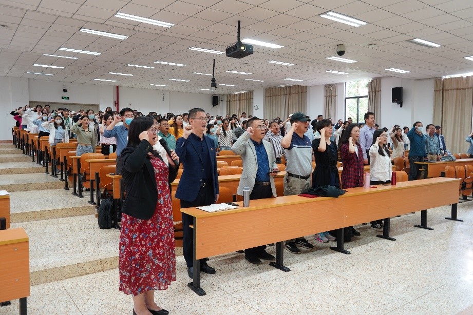 为教育引导广大师生党员不忘初心、牢记使命,增强“四个意识”,坚定“四个自信”,做到“两个维护”,忠诚拥护“两个确立”。结合实际,2022年6月17日,雷竞技raybet登录入口党委2022年“七一”评选表彰活动暨党员代表入党宣誓活动在雷竞技raybet登录入口呈贡校区文汇楼2218举行。