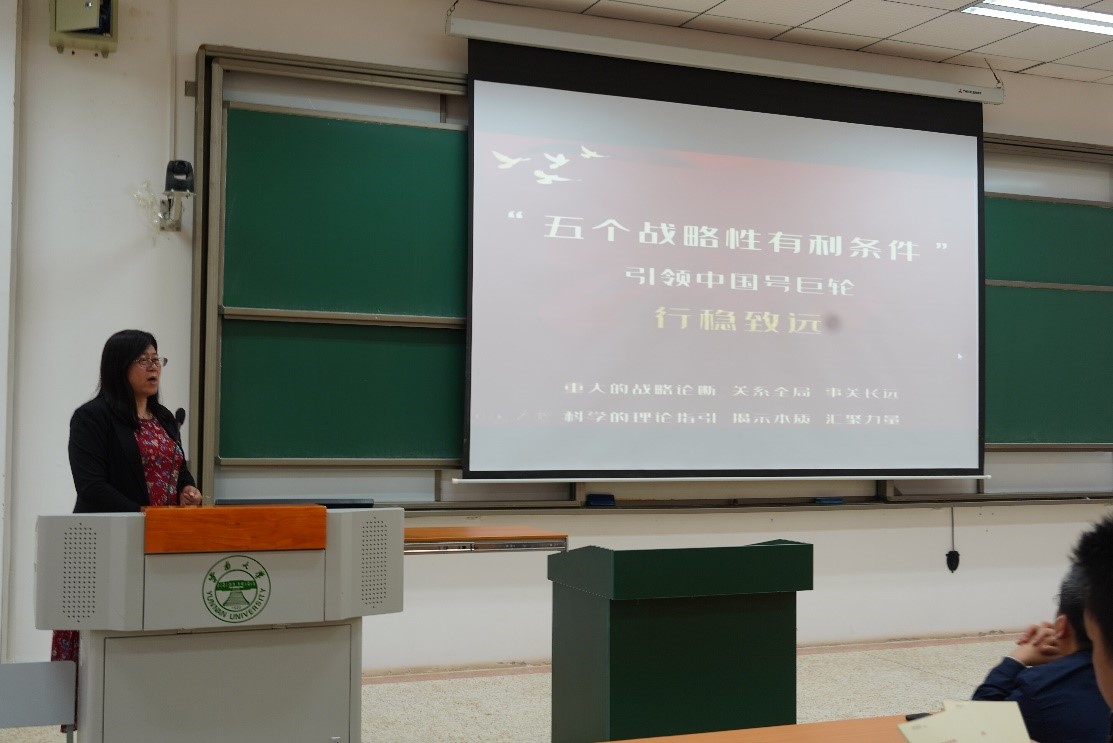 活动伊始,李娟书记以“从战略性有利条件把握经济社会发展大势”为主题,给全体党员同志上了一堂极具家国情怀的党课。李书记从战略思维角度出发,阐述习近平总书记关于“五个战略性有利条件”的重要论断,逐一分析“五个战略性有利条件”的具体内容及其在百年未有之大变局和世纪疫情交织影响下对我国奋进新征程、建功新时代的重要意义。