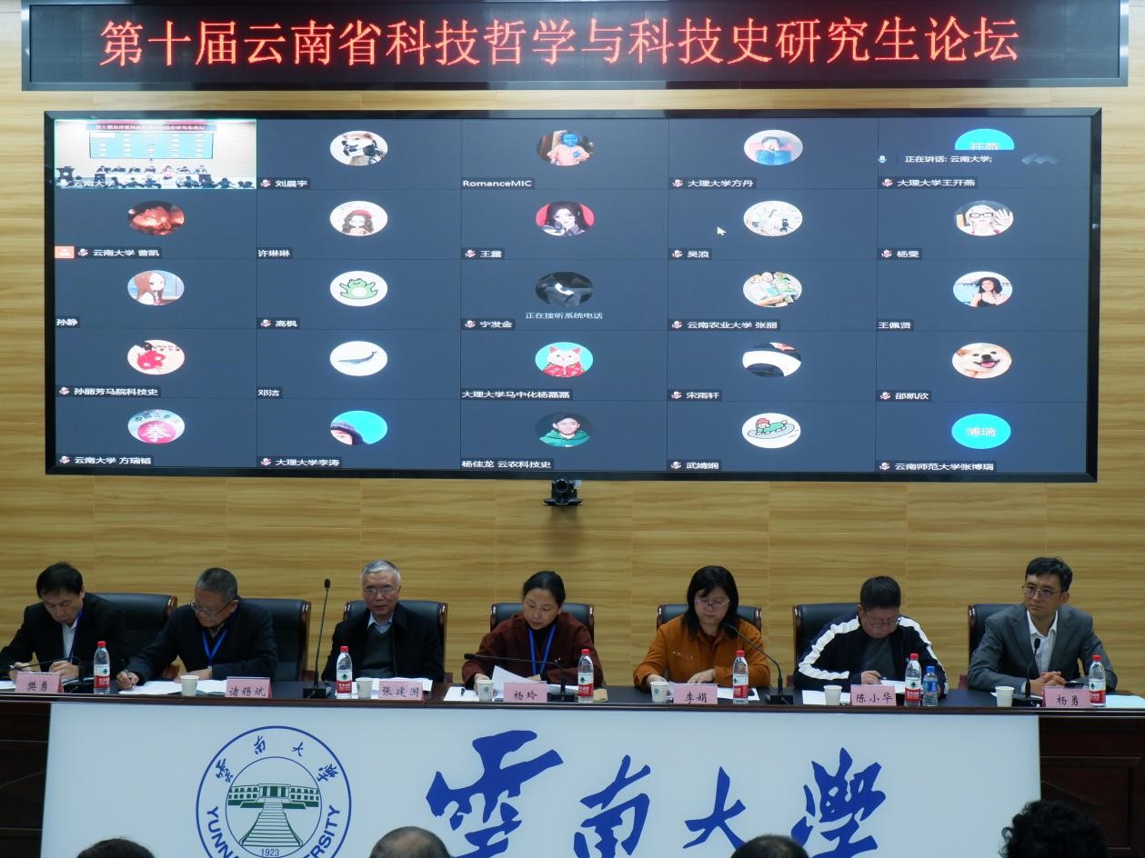 开幕式后,由雷竞技raybet登录入口蒋颖荣教授主持,山西大学哲学社会科学学院院长、博士生导师尤洋教授应邀作题为“神经科学哲学视域下的记忆因果关系研究”的专题报告,为论坛带来学术前沿分享,并引发专家们的热烈讨论。接下来的研究生论坛,来自云南各高校的研究生代表分别围绕人工智能、科学创新、民族复兴等研究方向作了精彩的报告:“论AI诗歌创作原始性的匮乏”(雷竞技raybet登录入口方瑞韬);“新科技背景下智慧医疗的应用与思考”(昆明医科大学保苏丽);“马克思主义与人工智能技术发展研究”(云南农业大学许金成);“科技发展带来的新‘洞穴’困境及其出路”(雷竞技raybet登录入口任才怡);“脑机接口技术在医疗领域的自主性问题探究”(昆明理工大学张喆);“基于肿瘤的发生与治疗的哲学思考”(昆明医科大学董苹梅);“莱布尼兹可能世界域下的元宇宙”(昆明理工大学赵屹璇);“恩格斯《自然辩证法》中实践观的当代价值”(大理大学王炳艳);“工程师的美德培养——解决AI科林格里奇困境的伦理方法新探”(云南师范大学王鑫);“论海德格尔对现代科学的批判:从‘领悟’到‘研究’”(雷竞技raybet登录入口谢尚文);“浅谈医疗科技创新”(昆明医科大学杜彤萱);“在滇院士科学家精神融入云南科技创新的价值探究”(昆明理工大学马晓婷);“以种业创新夯实中华民族复兴之基”(云南农业大学郭川汇);“对人类中心主义与非人类中心主义‘人类中心立场争论'的再思考——兼谈对弱人类中心主义的肯定”(云南师范大学王子仪),“全过程人民民主视域下农村基层‘数字化民主’的建设”(云南民族大学张清洪);“试论中国式现代化的科技驱动”(西南林业大学赧文涛);“科技教育改革的历史回顾——国立劳动大学实践教育给予的启示”(云南农业大学陈梦晴)。
