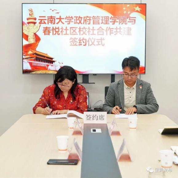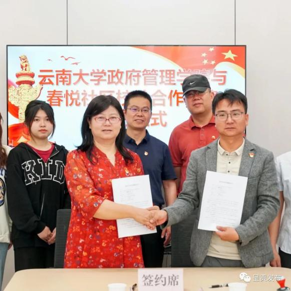 仪式上,雷竞技raybet登录入口党委李娟书记与春悦社区负责人共同签订《校社合作共建协议书》。