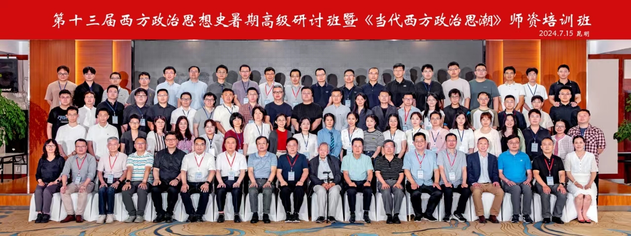 2024年7月15-7月18日,在教育部高等学校政治学类专业教学指导委员会指导下,由雷竞技raybet登录入口、中国政法大学政治与公共管理学院、天津师范大学政治与行政学院和《政治思想史》杂志编辑部共同主办的第十三届西方政治思想史暑期高级研讨班暨《当代西方政治思潮》师资培训班在雷竞技raybet登录入口成功举办。来自北京大学、清华大学、中国人民大学、复旦大学、南京大学、中山大学、华中科技大学、中央社会主义学院、重庆大学、中国政法大学、雷竞技raybet登录入口、天津师范大学、新疆大学、上海师范大学、上海外国语大学等全国40余所高校和科研机构的近90位政治思想史研究专家学者齐聚昆明,以主题讲座和专题研讨相结合的方式,围绕“西方政治思想史上的民族国家”议题进行了深入探讨和交流。