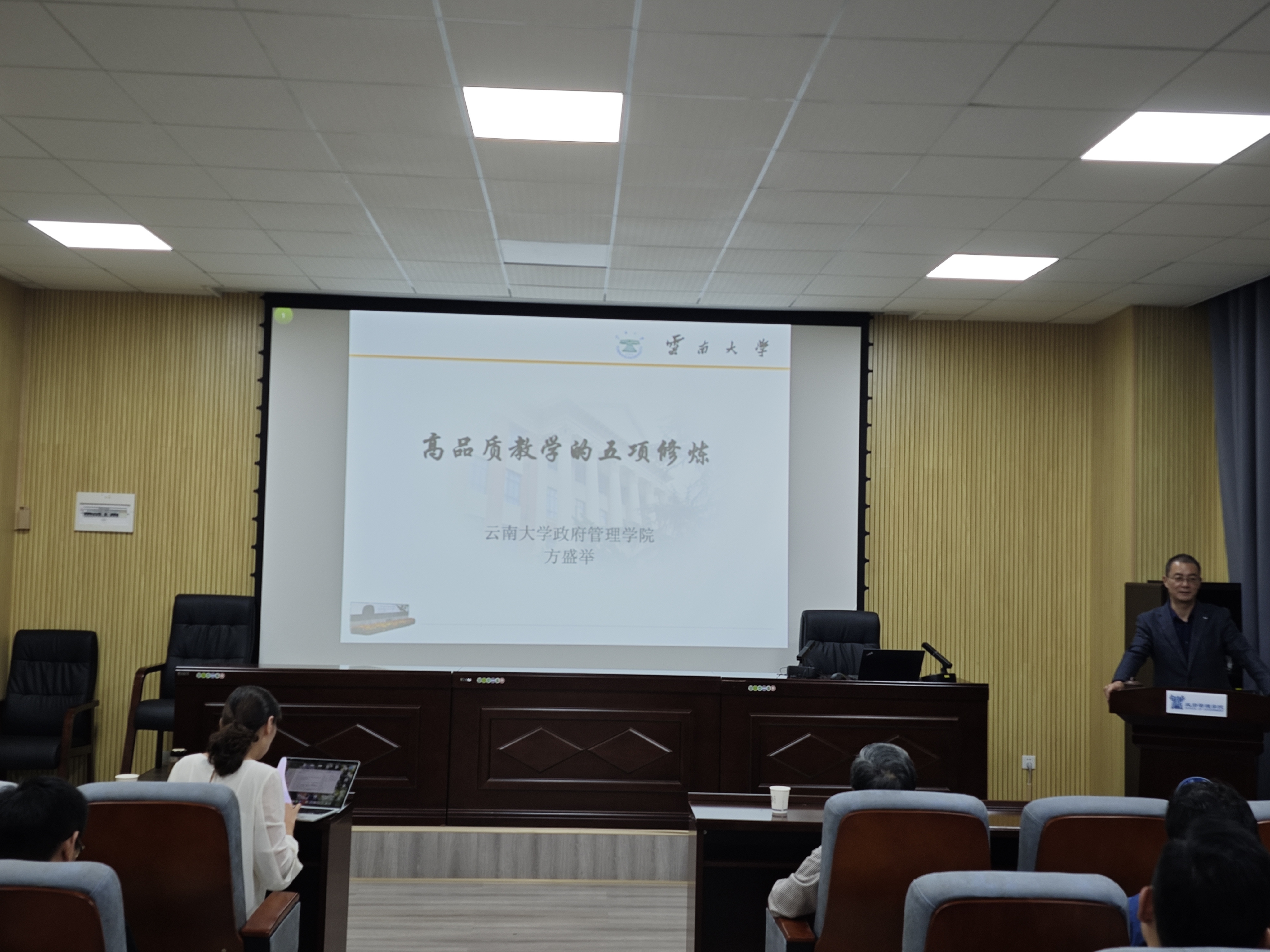 高水平教师是教育发展的中坚力量,是建设教育强国的重要基础。近日,中共中央、国务院印发了《关于弘扬教育家精神加强新时代高素质专业化教师队伍建设的意见》,提出了加强教师队伍思想政治建设、涵养高尚师德师风,提升教师专业素养等要求。这是弘扬践行习近平总书记提出的中国特有的教育家精神的重要举措,是新时代新征程强教强师的纲领性文件,为各地各校加强教师队伍建设指明了前进方向,提供了行动指南。为了弘扬教育家精神,落实立德树人的根本任务,2024年9月13日下午,雷竞技raybet登录入口方盛举院长在学院105报告厅为青年教师开展《高品质教学的五项修炼》的教学能力提升培训,由木永跃副院长主持。