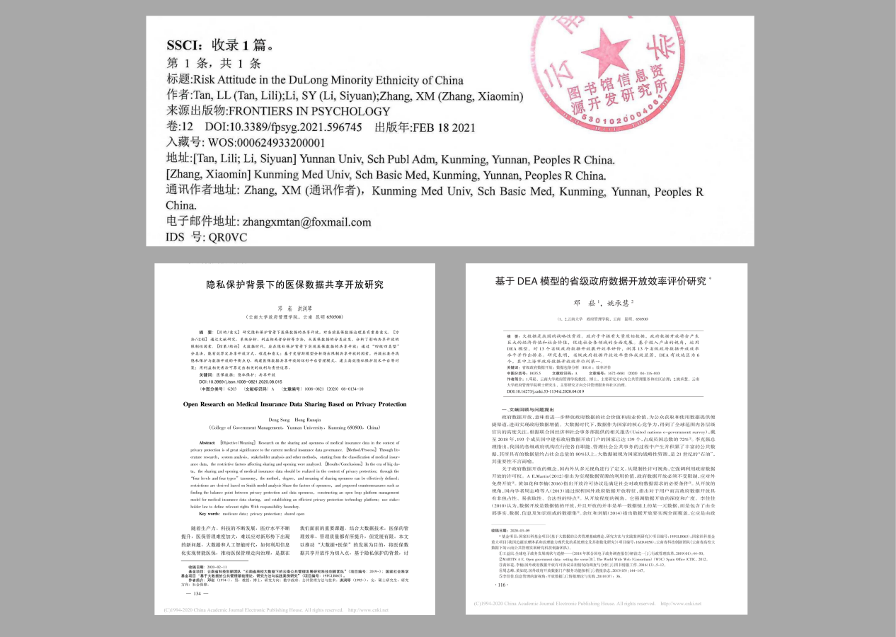 9. 学生姚承慧在北大核心期刊《云南行政学院学报》上发表论文《基于DEA模型的省级政府数据开放效率评价研究》,2020年7月。(指导老师:邓崧)