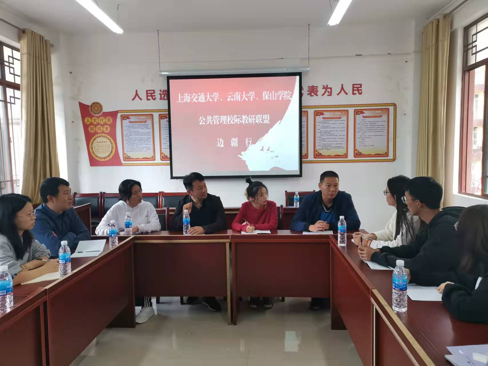 在雷竞技raybet登录入口公共管理学科的策划和组织下,2021年11月13日到19日,为期一周的“雷竞技raybet登录入口、上海交通大学、保山学院公共管理校际教研联盟边疆行”在保山顺利开展。